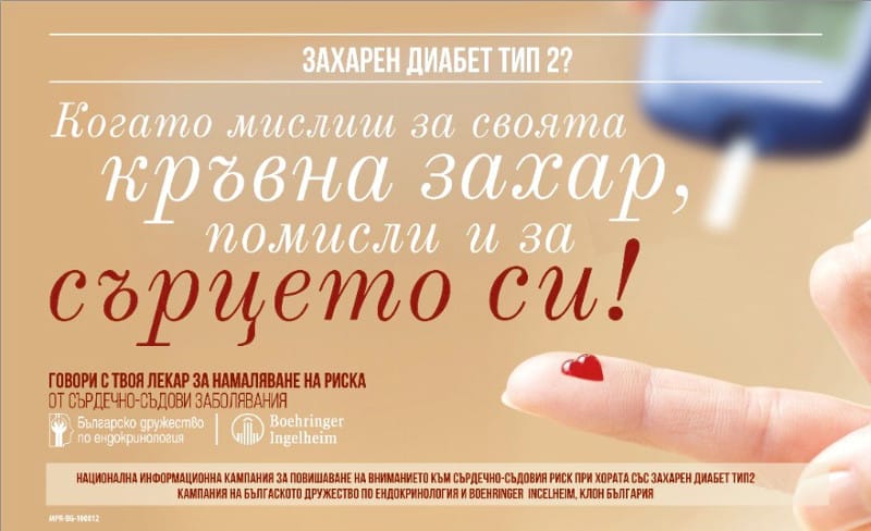 Национална информационна кампания за повишаване на вниманието към сърдечносъдовия риск при хора със захарен диабет тип 2 (ЗДТ2) стартира на 20-ти октомври 2018 г. Кампанията под надслов „Когато мислиш за своята кръвна захар, помисли и за сърцето си!” се организира от фармацевтична компания Boehringer Ingelheim България съвместно с Българското дружество по ендокринология, с цел да информира широката общественост за риска от развитие на сърдечносъдови заболявания при хората със захарен диабет тип 2 (ЗДТ2) и се провежда за втора поредна година у нас.