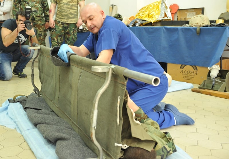 Той поясни, че 75% е предотвратимата смърт на бойното поле е заради външно кървене: „Тоест, ако вас ви няма, тези 75% ще умрат”, допълни още той, след което показа на участниците в курса някои трикове, които е научил по време на участието си в мисии зад граница.