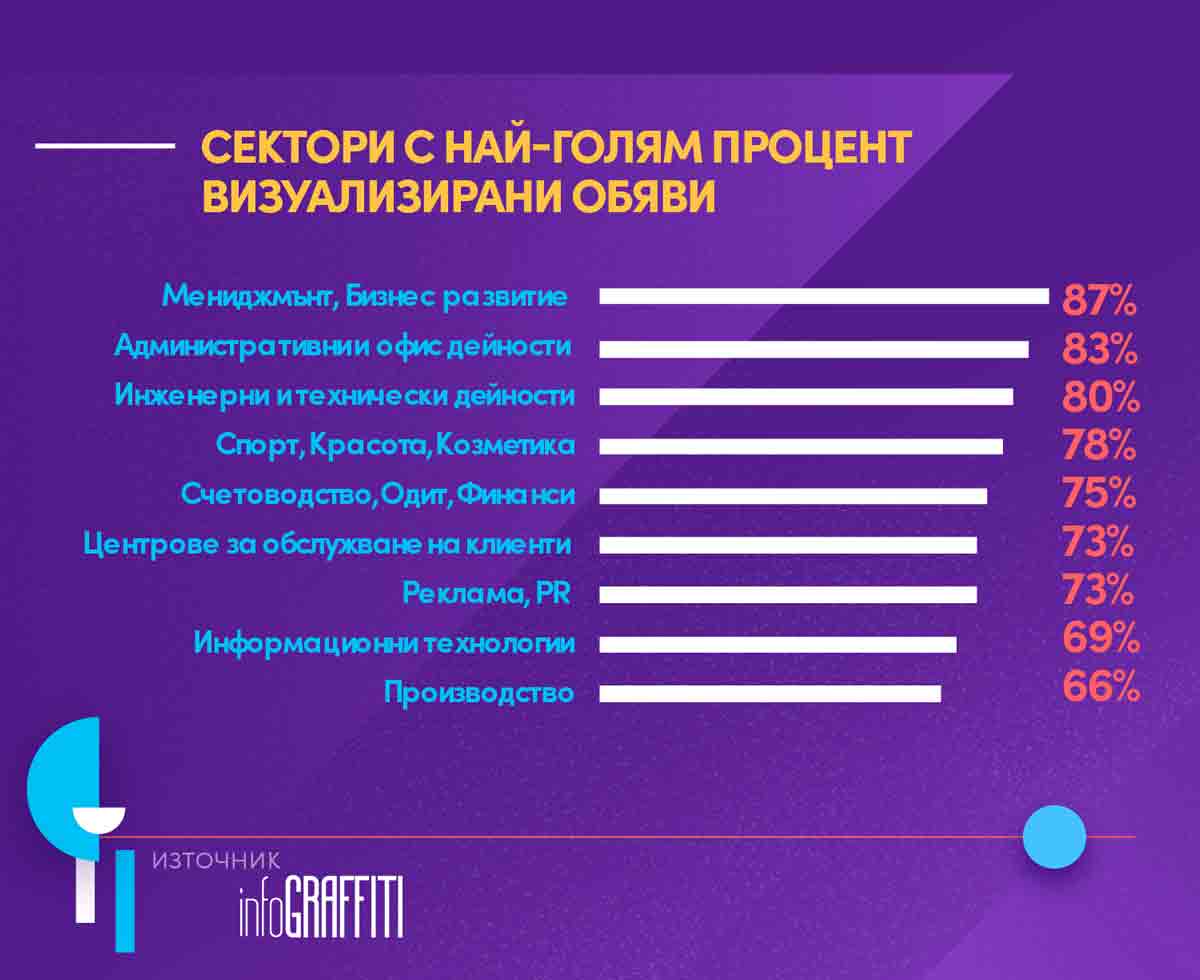 Едва 31% от обявите за работа в България са без илюстрации, а 69% от обявите за работа във всички сектори…